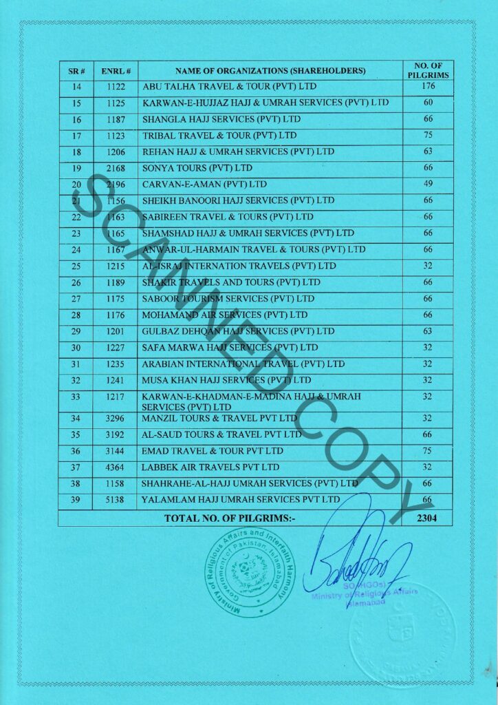Company: SAFA MARWA HAJJ SERVICES (PVT) LTD